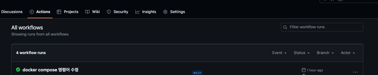상단에 Actions에서 계속 배포를 시도하면서 에러가 뜨면 잡으면 됩니다