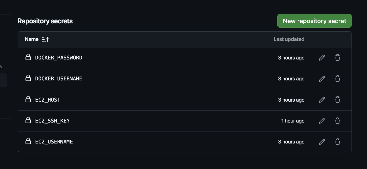 Settings > Security > Secrets and variables에 있는 Actions를 눌러서 등록해주면 됩니다.