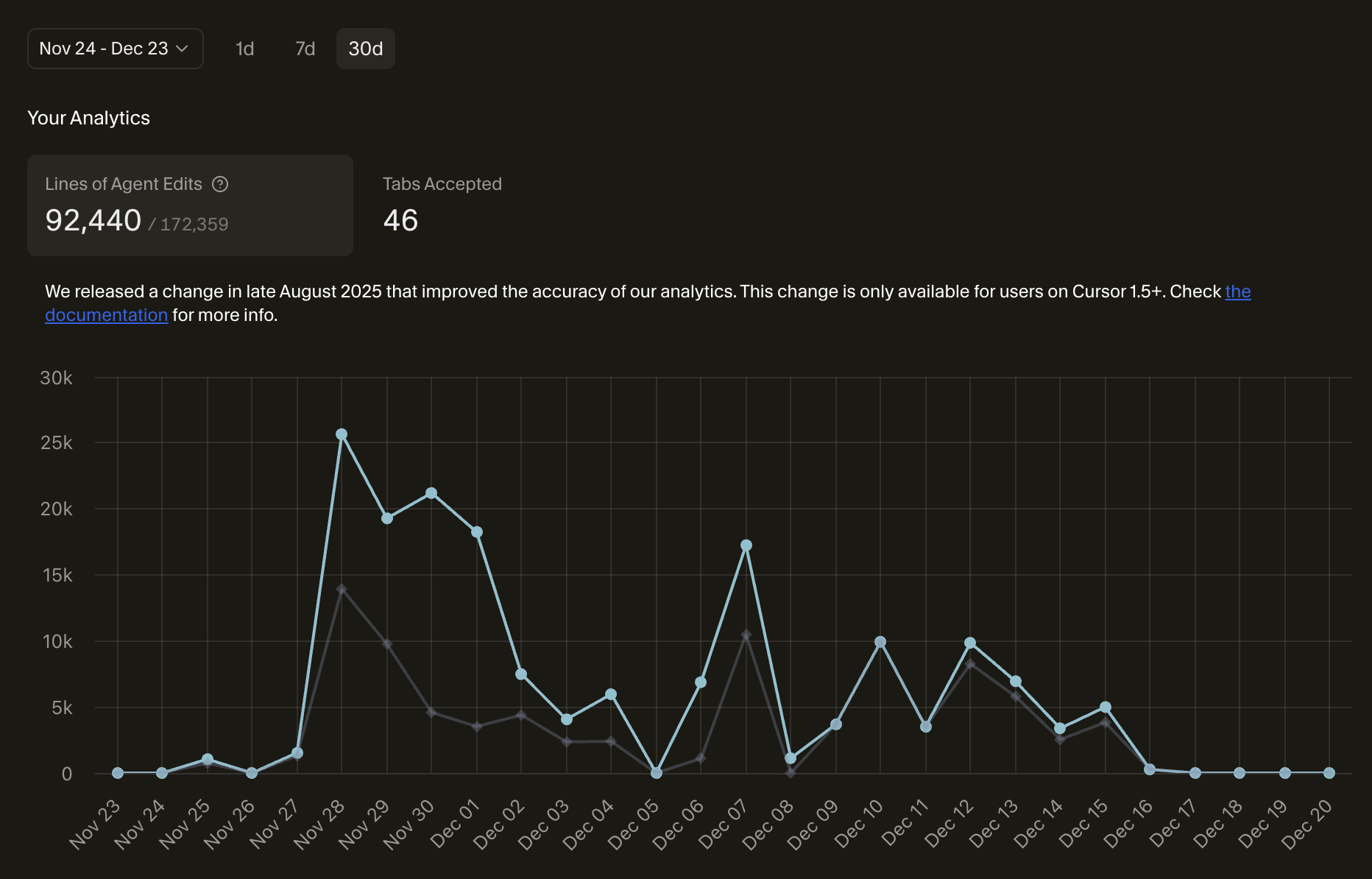 cursor는 한달 최대로 12만줄인가 썼었다 ㅋㅋ..