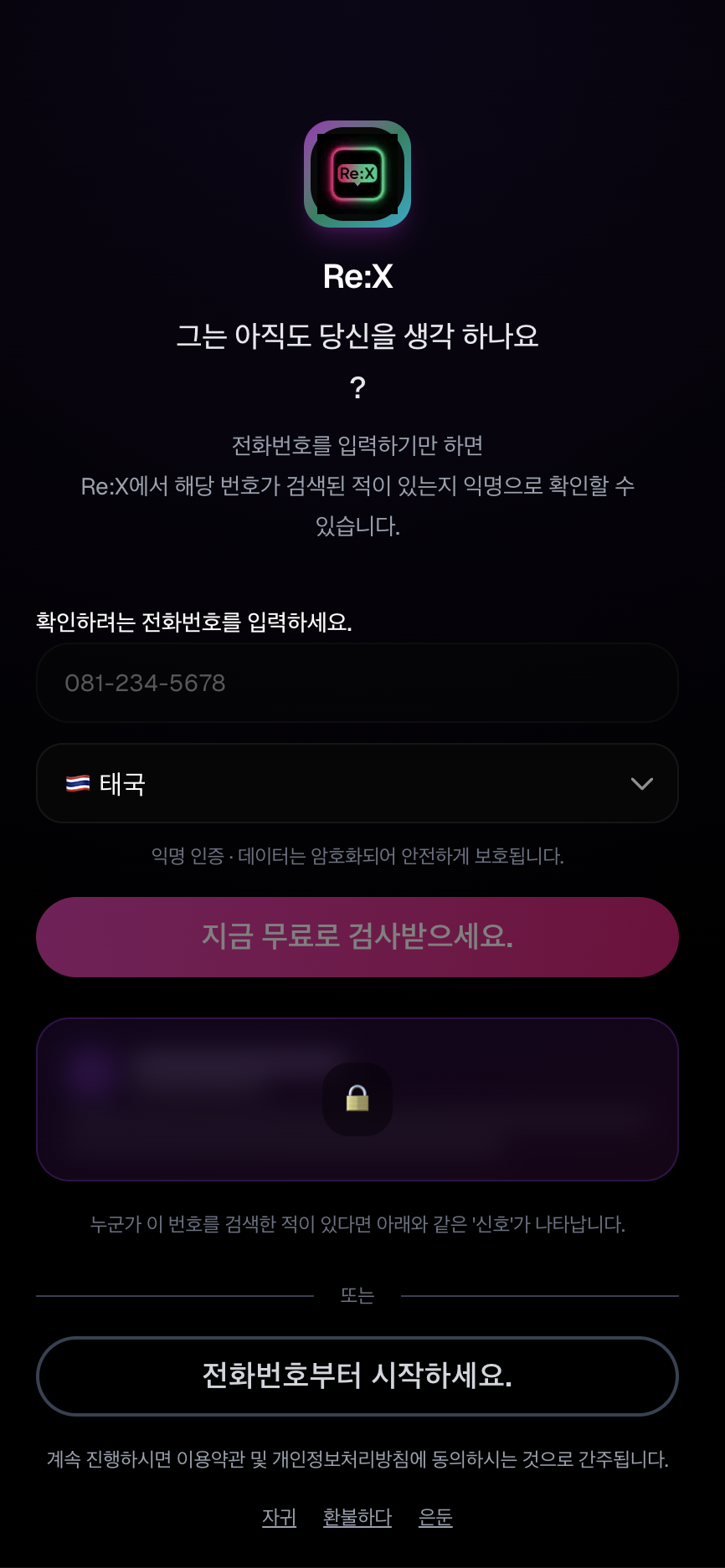 Private reconnection/matching service for ex-partners based on mutual phone registration.