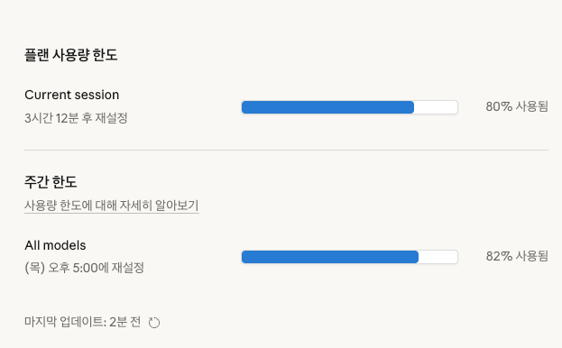 claude는 금방 닳아요.. 프롬프트 영어로 작성하고 범위 제한해도 ...
