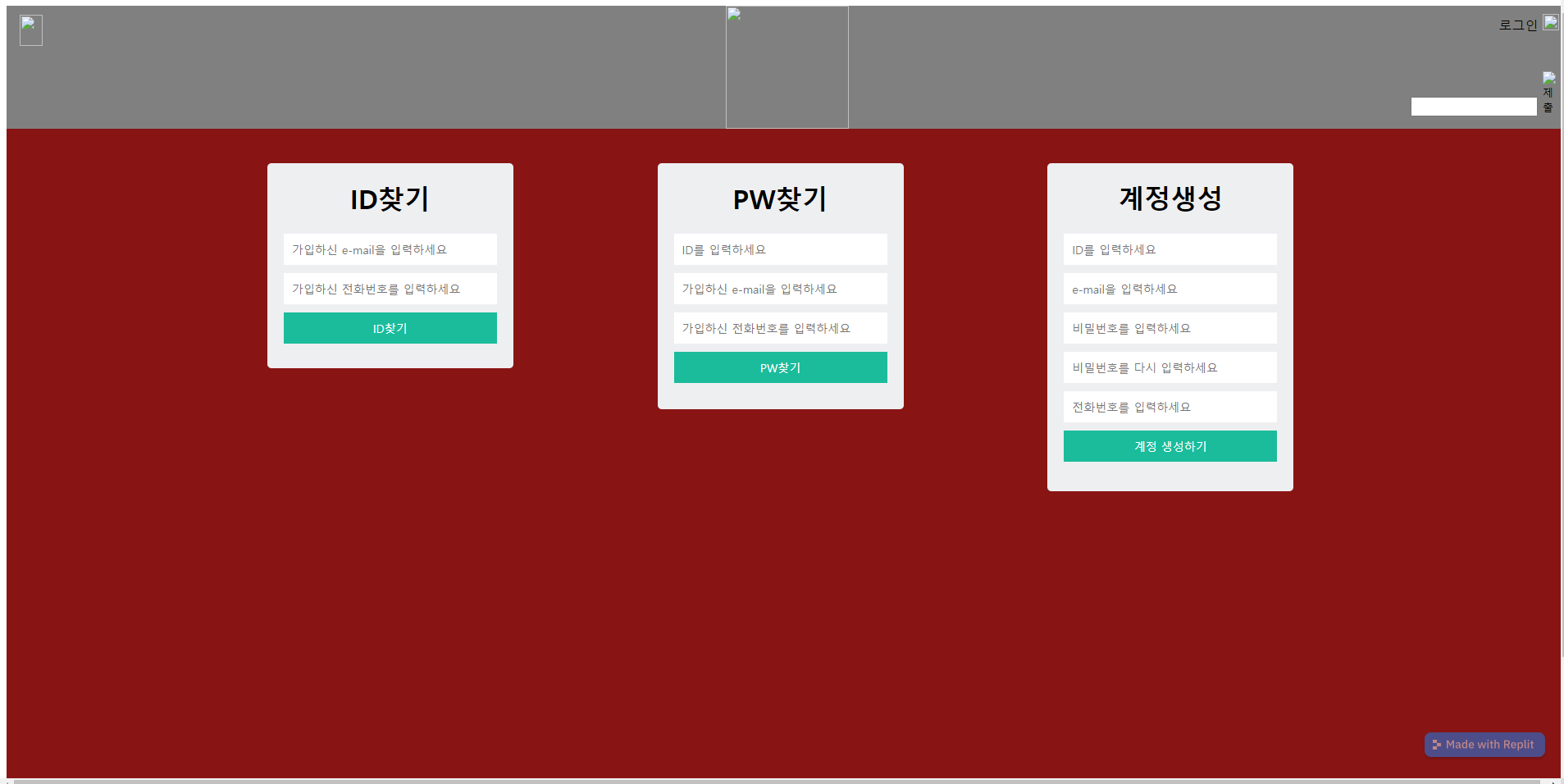 Login 창과 비밀번호 찾기, Id찾기, 계정생성하기 form을 사용해서 구현완료