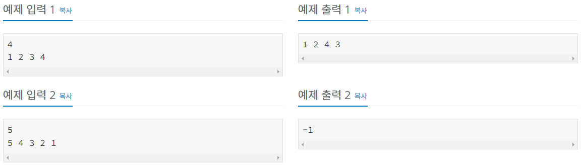 그래서 어떤 방식이 있을까 생각해보다가 간단하게 맨 뒤에 숫자부터 시작해서 앞에 숫자보다 큰 경우 자리를 바꾼다음 출력해주면 되겠구나 하고 생각해서 풀었더니 잘 풀렸습니다.
