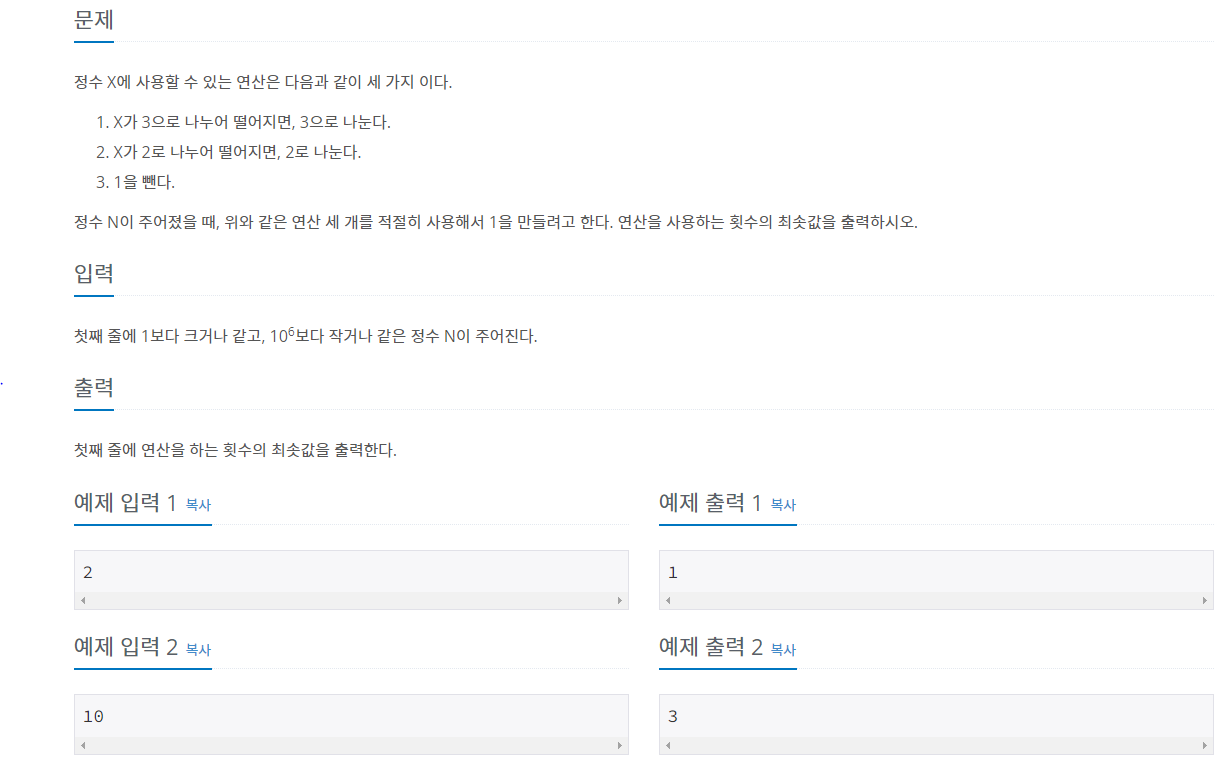 1이 되기 위해서 필요한 연산의 숫자를 구하는 것 이다.