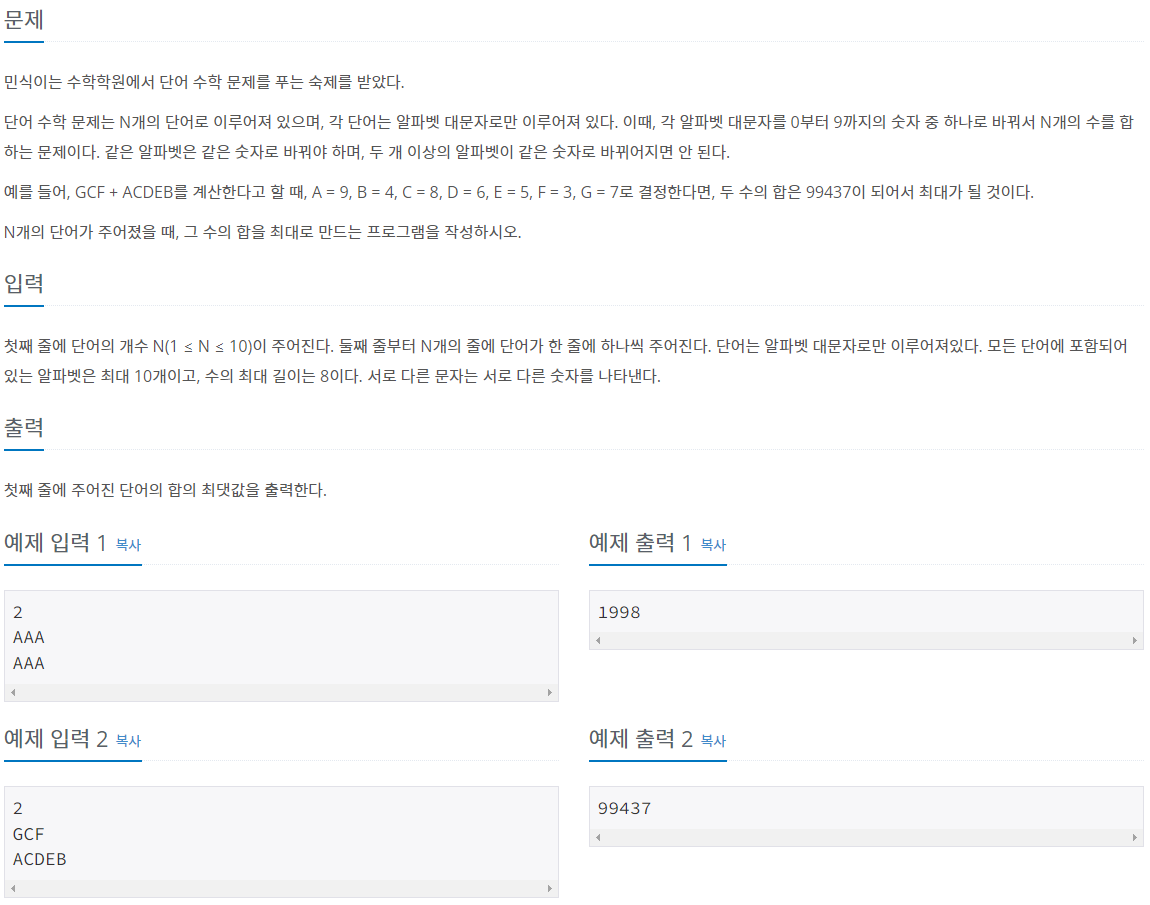 찾아보니 딕셔너리를 이용한 풀이가 많았는데 입력이 대문자 알파벳이란 특성을 가지고 푸는 풀이가 있어서 힌트를 얻어 풀 수 있었다.