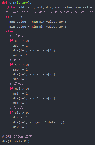 1. 우선 첫번째 for문에서는 연산자 리스트 [2,1,1,1] 를 [+,+,-,*,//]로 바꿔주었다.