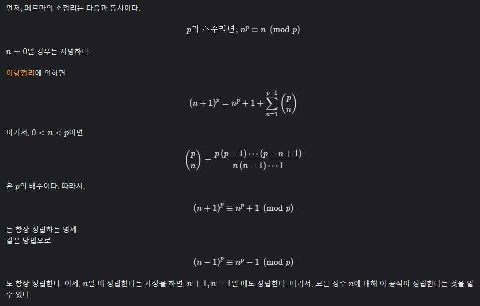 페르마의 소정리는 다른 블로그에 잘 적혀있으니 그걸 보면 될 것같다.
