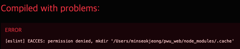 [eslint] EACCES: permission denied, mkdir '/Users/minseokjeong/pwu_web/node_modules/.cache’